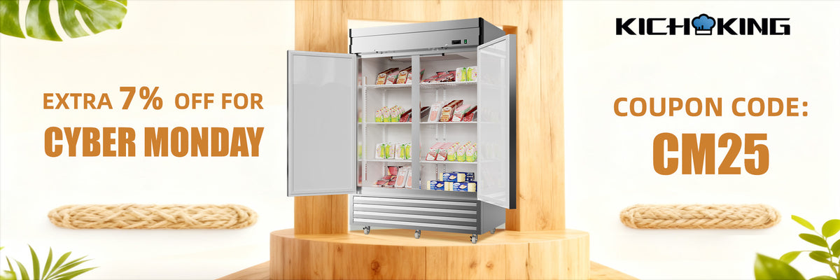 KICHKING 54"W Commercial Reach-In Refrigerator - Solid Door Two Section Stainless Steel Refrigerator