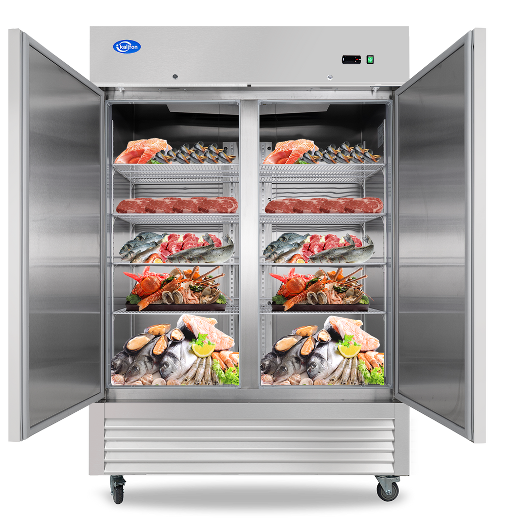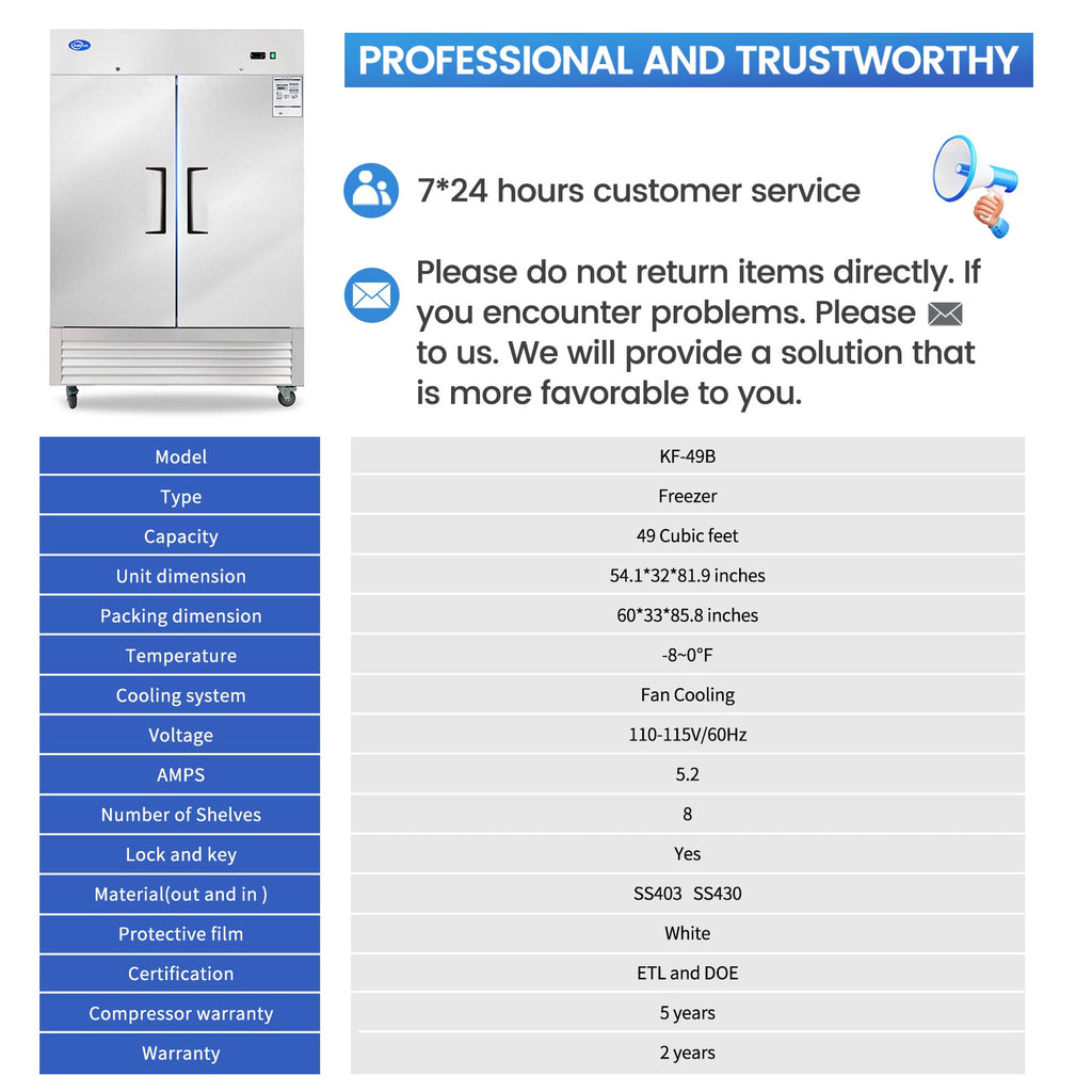 Certifications and protection you can see - kalifon products are ETL safety certified and ETL hygiene certified, as well as DOE standard energy certified. The freezers are covered with a protective film to ensure no scratches. Food-grade stainless steel inside and out, which does not leave fingerprints and can withstand daily use in busy commercial environments